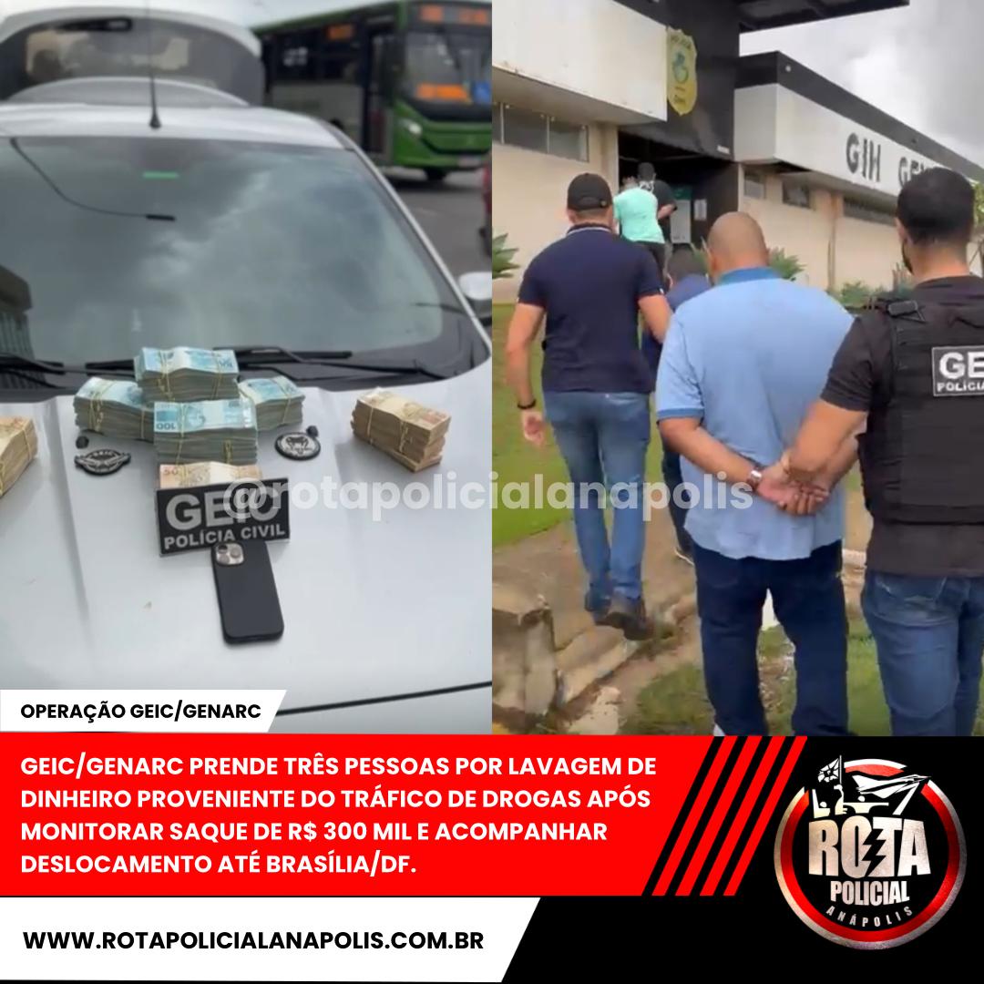 GEIC/GENARC PRENDE TRÊS PESSOAS POR LAVAGEM DE DINHEIRO PROVENIENTE DO TRÁFICO DE DROGAS APÓS MONITORAR SAQUE DE R$ 300 MIL E ACOMPANHAR DESLOCAMENTO ATÉ BRASÍLIA/DF.