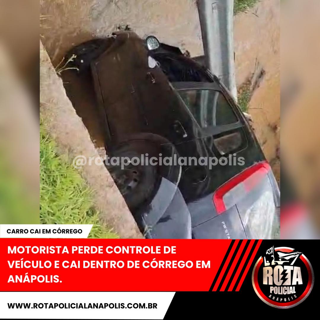 MOTORISTA PERDE CONTROLE DE VEÍCULO E CAI DENTRO DE CÓRREGO EM ANÁPOLIS.