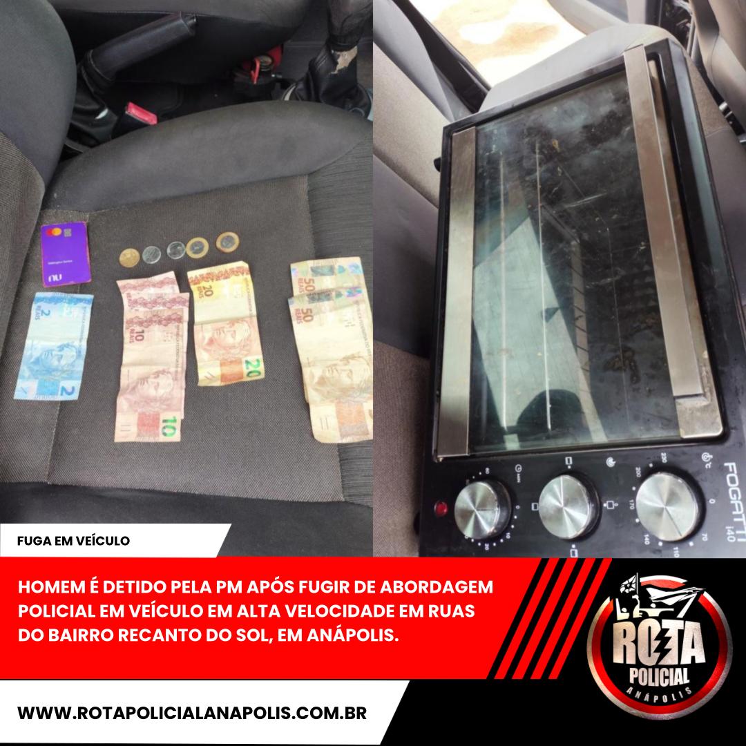 HOMEM É DETIDO PELA PM APÓS FUGIR DE ABORDAGEM POLICIAL EM VEÍCULO EM ALTA VELOCIDADE EM RUAS DO BAIRRO RECANTO DO SOL, EM ANÁPOLIS.