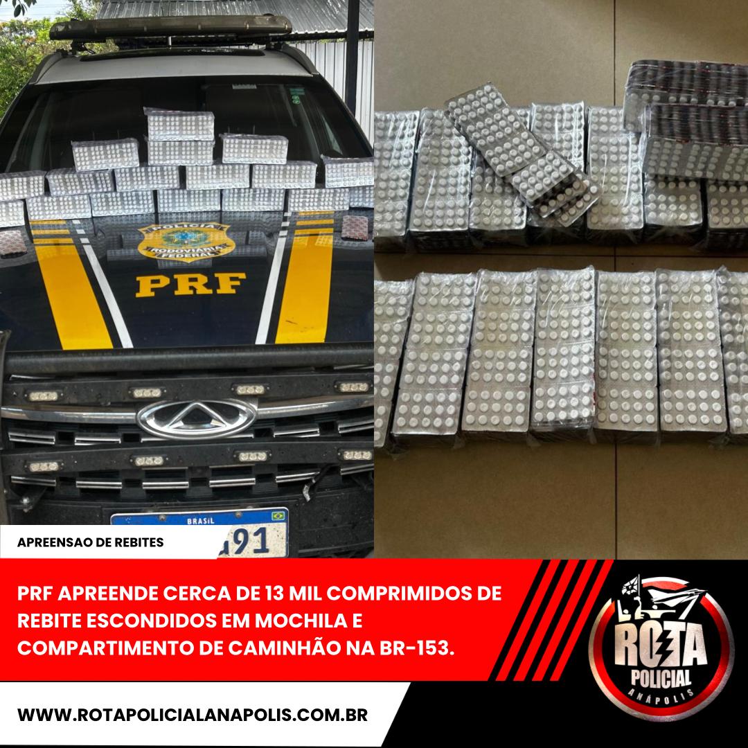 PRF APREENDE CERCA DE 13 MIL COMPRIMIDOS DE REBITE ESCONDIDOS EM MOCHILA E COMPARTIMENTO DE CAMINHÃO NA BR-153.
