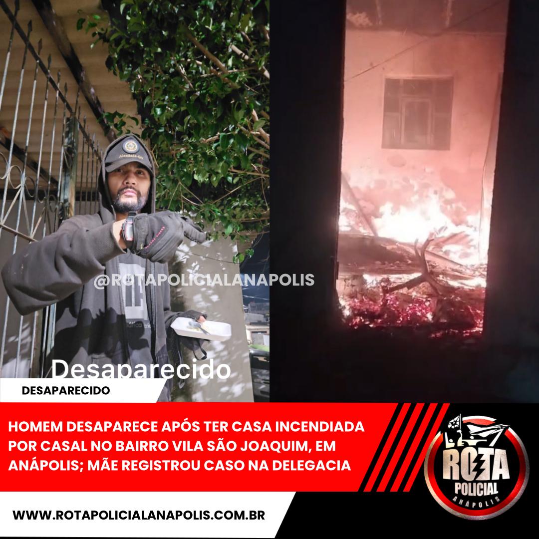 HOMEM DESAPARECE APÓS TER CASA INCENDIADA POR CASAL NO BAIRRO VILA SÃO JOAQUIM, EM ANÁPOLIS; MÃE REGISTROU CASO NA DELEGACIA