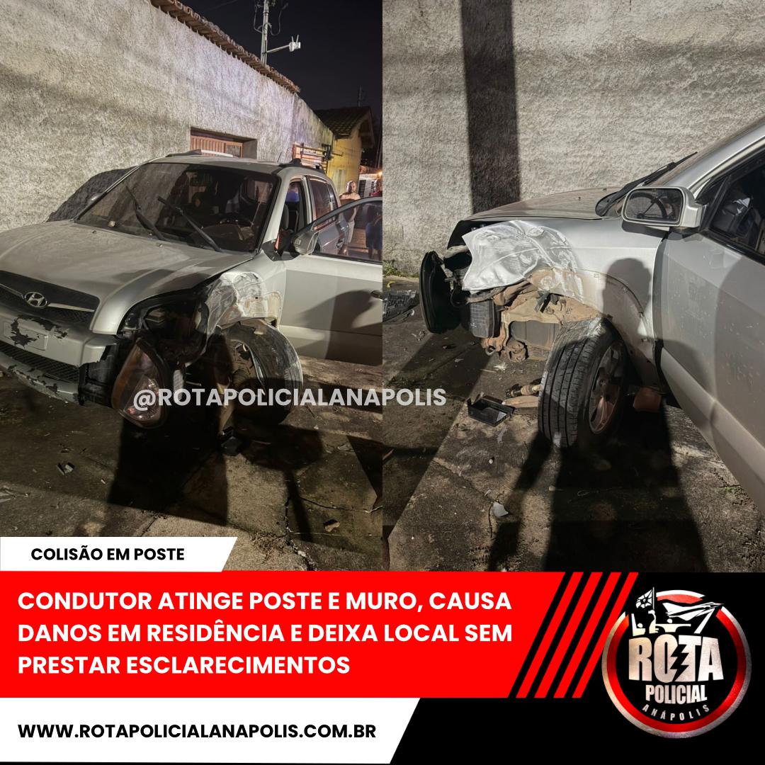 CONDUTOR ATINGE POSTE E MURO, CAUSA DANOS EM RESIDÊNCIA E DEIXA LOCAL SEM PRESTAR ESCLARECIMENTOS