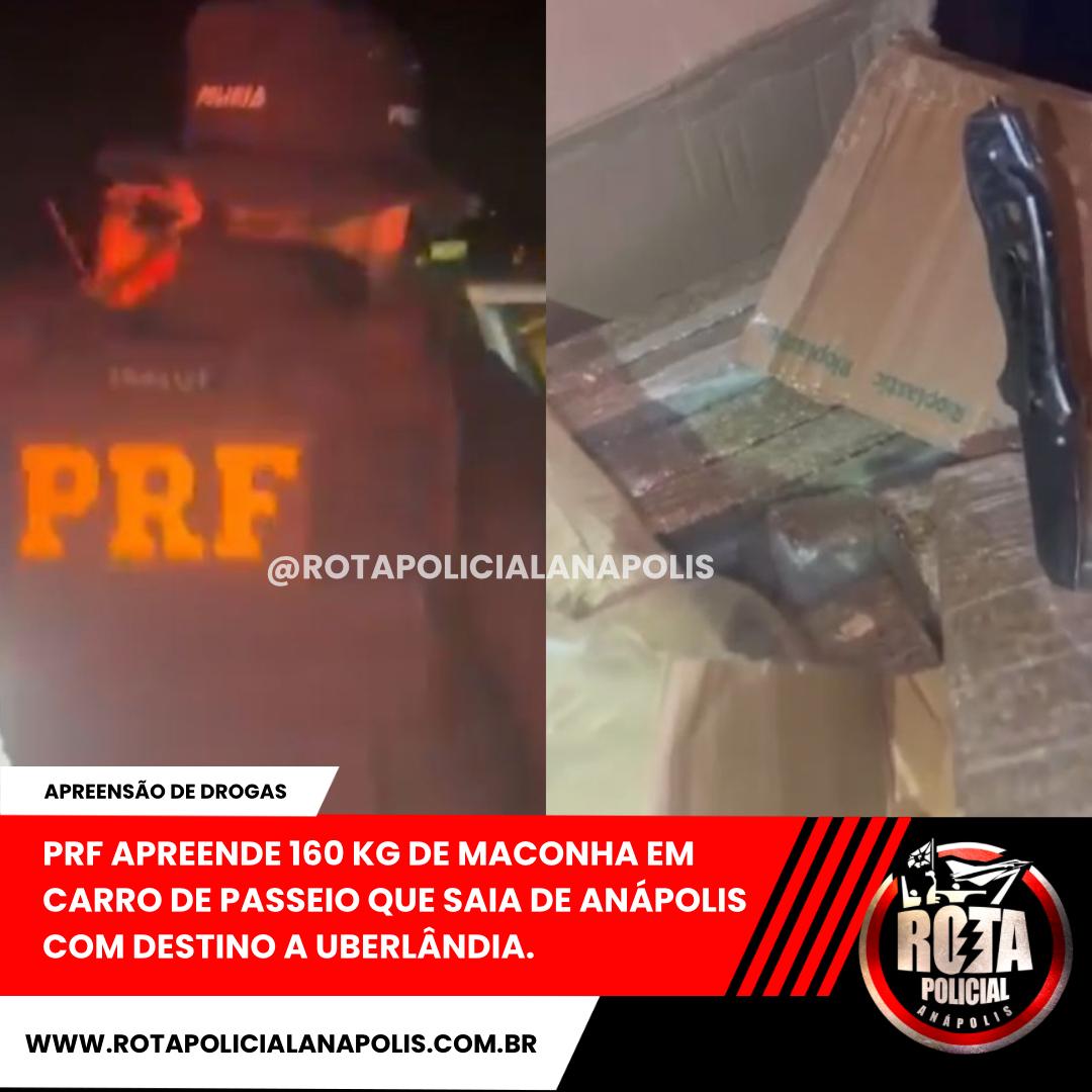 PRF APREENDE 160 KG DE MACONHA EM CARRO DE PASSEIO QUE SAIA DE ANÁPOLIS COM DESTINO A UBERLÂNDIA.